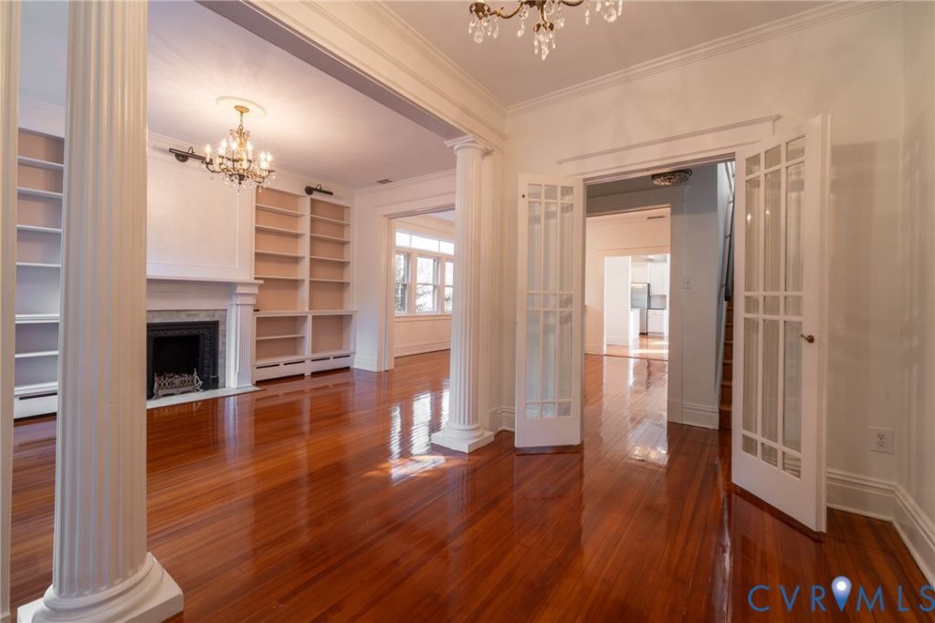 This spectacular renovated 1915 Greek Revival home seamlessly blends timeless architectural charm with modern luxury in the heart of the Museum District-just a short walk to Carytown, the Fan, and the Virginia Museum of Fine Arts. A gracious, sun-filled foyer welcomes you into elegant formal living and dining rooms rich with natural light. Architectural details abound, including stately columns, exquisite moldings, and a handsome gas fireplace flanked by custom built-in bookshelves. The spacious dining room offers flexibility and showcases a built-in wine or china cabinet. The thoughtfully updated kitchen features soapstone and marble countertops, stainless steel appliances, and opens to a spacious family room with custom built-ins-ideal for everyday living and entertaining. A stylish half bath and pantry complete the first floor. Upstairs, the expansive primary suite offers a sitting area, large walk-in closet, ensuite bath, and private balcony. Two additional generously sized bedrooms provide flexibility, including the option for a second primary with direct access to the hall bath. A dedicated laundry area adds convenience. Outdoor living is exceptional, with a charming front porch, rear deck, and rare oversized front and rear yards-an uncommon find in this location. Additional highlights include a detached one-and-a-half-car garage, off-street parking, and a bonus ground-level storage/utility room. Fully detached and move-in ready, this home lives larger than its square footage and offers the best of city living.